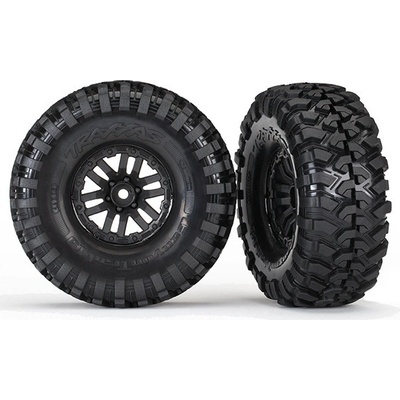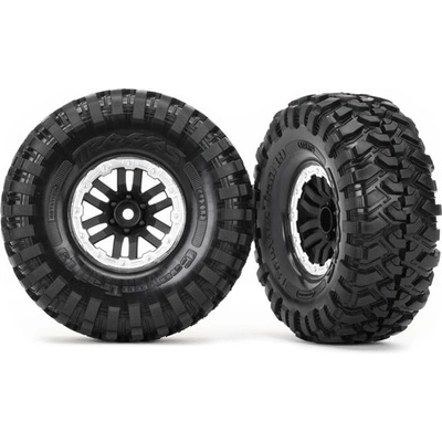 Kompletní kola. Černé disky s pneumatikami Canyon Trail pro RC modely aut TRX v měřítku 1:10 (2 ks v balení). Vhodné např. pro RC modely: - Traxxas TRX-4