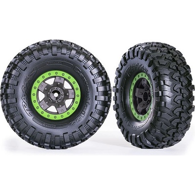 Kompletní univerzální kolo pro RC modely aut TRX-4. Šedý disk TRX-4 Sport s imitací zeleného Beadlock kroužku, pneumatika Canyon Trail (2 ks v balení). Rozměr disku 48x35 mm....