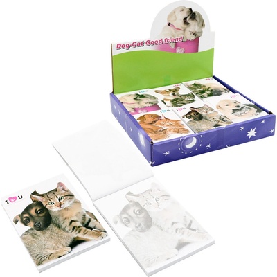 Mini bloček na psaní poznámek s potiskem roztomilých domácích mazlíčků.kapesní formát 59 x 83 mm 40 odtrhávacích listůBalení obsahuje 48 bločků, mix designů.Cena je za 1...