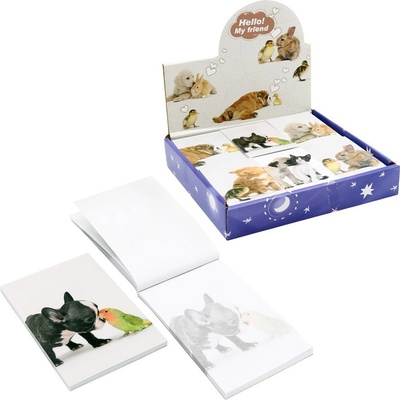Mini bloček na psaní poznámek s potiskem roztomilých domácích mazlíčků. - kapesní formát 59 x 83 mm 40 odtrhávacích listů Balení obsahuje 48 bločků, mix designů. Cena je za 1...
