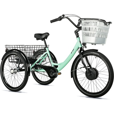 Elektro tříkolka TRINITY 6spd Disk v černé barvě je postavená na hliníkovém rámu velikosti 18", který má nízkou úroveň spodní trubky (340 mm). Tříkolka je vybavena zadním 6 stupňovým měničem a diskovými brzdami na všech třech kolech.Tento model je vhodný pro cyklisty,...