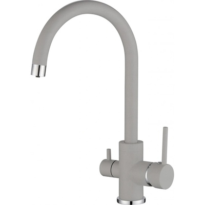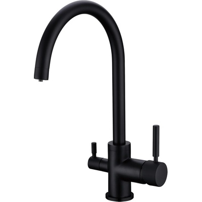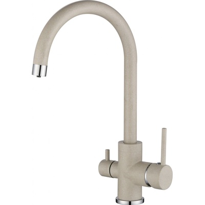 Směšovací baterie s funkcí připojení filtru. Třícestný směšovač, kombinující tři zdroje vody: filtrovaná, horká a studená
