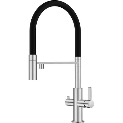 Směšovací baterie s vytahovací sprškou s funkcí připojení filtru. Třícestný směšovač, kombinující tři zdroje vody: filtrovaná, horká a studená