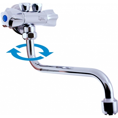 Vodovodní baterie klasická umyvadlová/dřezová ze stěny, s otočným kulatým ramínkem 160 mm pro nízkotlaké ohřívače. tato baterie je vybavena klasickým vrškem 3/8" MD0169...