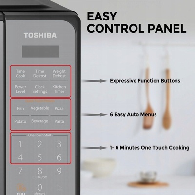 Mikrovlnná trouba Toshiba MM2-EM20PF(MB) Moderní design Toshiba MM2-EM20PF(MB) je elegantní mikrovlnná trouba s objemem 20 litrů s rychlým dotykovým nastavením, 10 úrovněmi...