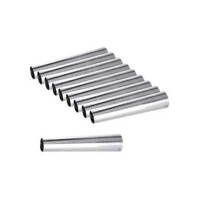 Trubičky na kremrole - sada 10 ks, mají kónický tvar pro snadnější snímání upečených trubiček, šátečků... Materiál: pocínovaný kov. Rozměry: pr. 1,9 cm/ 2,3 cm, d. 11,3 cm.