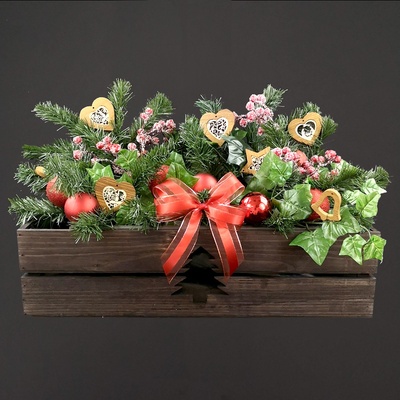 Dřevěný truhlík je vyrobený z masivního smrkového dřeva a namořený na hnědou barvu. Ve středu truhlíku je vyříznutý vánoční motiv stromečku. Truhlík je ozdobou nejen do...