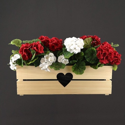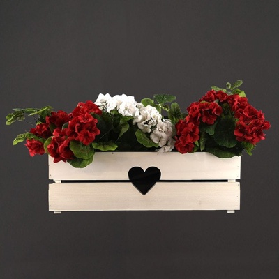 Dřevěný truhlík je vyrobený z masivního smrkového dřeva a natřený bílou barvou. Ve středu truhlíku je vyříznutý motiv srdíčka. Truhlík je ozdobou nejen do interiéru, ale využití...
