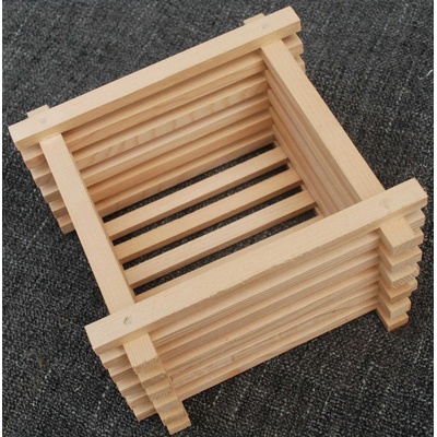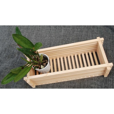 Dřevěný žebrovaný truhlík na orchideje. Délka vnitřní strany truhlíku je 15,5 cm.