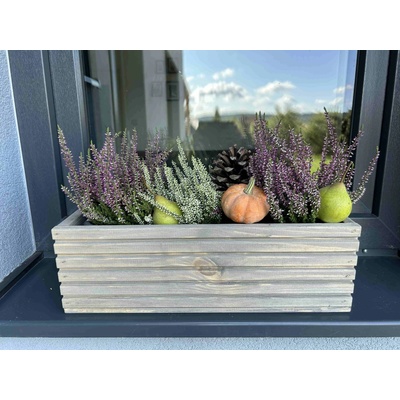 Provedení: Dřevěný obdelníkový truhlík na květiny je vyrobený z borovicového dřeva. Součástí květináče je plastová fólie pro izolaci zeminy a kořínků pěstovaných rostlin od...