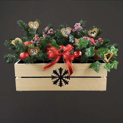 Dřevěný truhlík je vyrobený z masivního smrkového dřeva a je namořený na hnědou barvu. Ve středu truhlíku je vyříznutý vánoční motiv vločky. Truhlík je ozdobou nejen do...