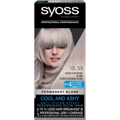 Syoss Cool Blonds 10-55 Ultra Platinum Blond zesvětlovač vlasů Syoss Permanentní barvivo pro dlouhotrvající, intenzivní a energickou barvu. Pigmenty pronikají hluboko do...
