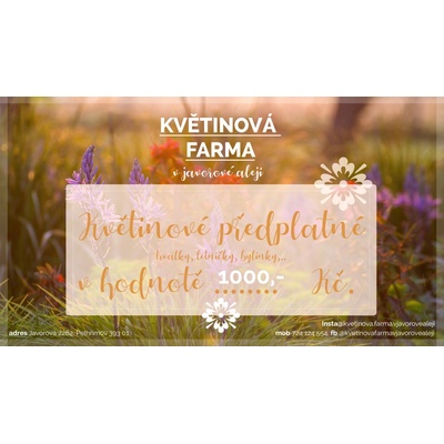 Dárková poukázka pro milovníky květin a bylinek Hledáte dárek, který potěší oko, srdce i duši? Naše dárková poukázka v hodnotě 1 000 Kč je ideální volbou pro každého, kdo...
