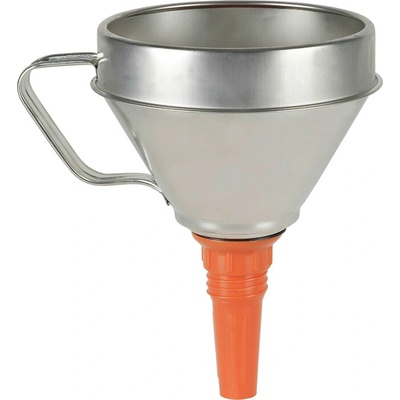 Kvalitní trychtýř z plechu s vyšším límcem, s držadlem a s bezpečnostním plastovým výtokovým nástavcem dobře odolává olejům, kyselinám, pohonným hmotám, příp. prasknutí. Má...