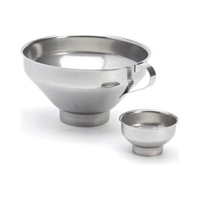 Nerezový kuchyňský trychtýř s průměrem 13 cm a výškou 9 cm. Praktický pomocník do každé domácnosti, který se pohodlně vejde do myčky.