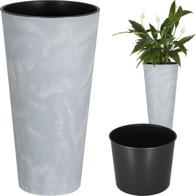 Květináč s vkladem TUBUS SLIM BETON EFFECT šedý 30cm Stylový plastový květináč s vkladem v imitaci betonu. Perfektně se hodí na terasy, zahrady a také krásně ozdobí váš...