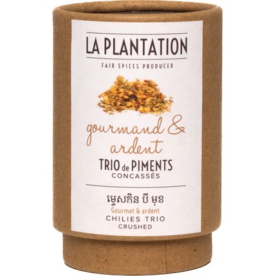 Trio Chilli La Plantation! Spíše než výběr jediného chilli, naše směs drcených chilli papriček dodá vašim pokrmům hřejivý kořeněný nádech! Tyto chilli papričky se sklízejí v...