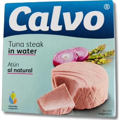 calvo Tuňák naložený ve vlastní šťávě Kvalitní tuňák ve vlastní šťávě s velmi jemnou strukturou. Ideální do lehkých jídel a zeleninových salátů. Zdravý pokrm s minimem kalorií....