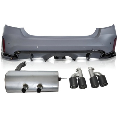 Zadní nárazník BMW F30 2011-2018 M3 style + výfuk. Zadní nárazník dodá vašemu vozu sportovní vzhled. Předem zhotoveny otvory pro PDC (parkovací senzory). Vyrobeno z...