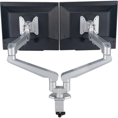 Držák 2 LCD displejů s nastavitelnou hodnotou zatížení ramene a s plynovými tlumiči. 2 nezávislá ramena. Montáž na stůl.; Použití: Pro montáž 2 LCD monitorů na stůl.; Nosnost:...