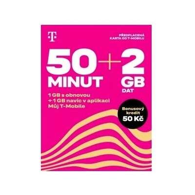 50 MINUT + 2 GB Stouto předplacenou kartou máte 50 minut volání a 5 SMS do všech sítí, a navíc až 2 GB dat (1 GB v základu a 1 GB k vyzvednutí v aplikaci Můj T-Mobile) to na celý měsíc od aktivace karty. Pokud Vám tento balíček vyhovuje a chcete ho používat každý měsíc...