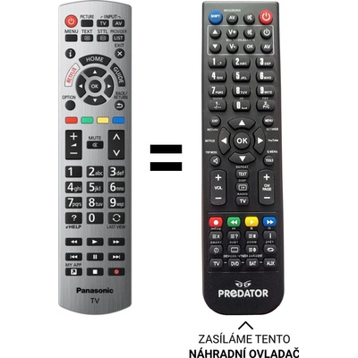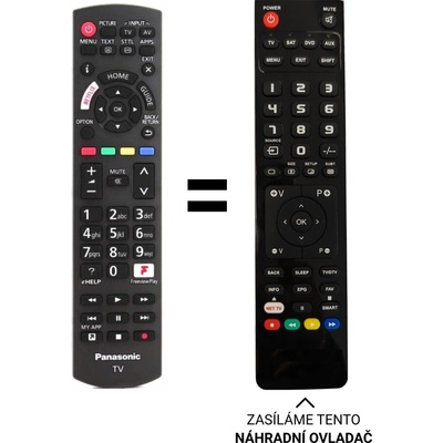 Náhradní dálkový ovladač například pro PANASONIC modely: TX32ES600E, TX32CSW514, TX32CST606, TX43ESW504, TX40ESW504, TX32CS510E, TX40DSW404, TX40ESW404, TX32ESW504, TX40DS400E,...