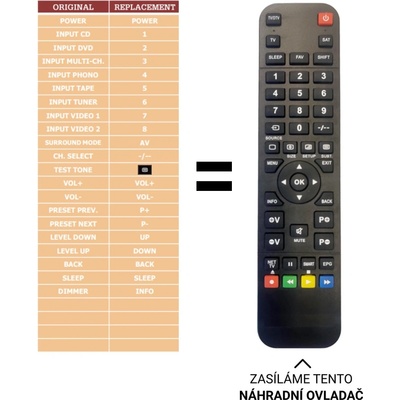 Náhradní dálkový ovladač YAMAHA TX-680RDS (TX680RDS) - 100procent náhrada 1:1 za originální dálkový ovladač. Dálkový ovladač je určen pro tyto modely YAMAHA: TX-670RDS,...