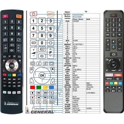 Dálkový ovladač pro TV Panasonic N2QAYB000354 - kvalitní náhradní dálkový ovladač jiného vzhledu s podporou všech funkcí originálního ovladače. K ovládání je přiložený rozpis...