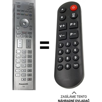 Panasonic - náhradní dálkový ovladač. Například pro TX-L32DT30B, TX-L32DT30E, TX-L32DT30Y, TX-L32DT35E, TX-L32ETF52, TX-L32ETN53, TX-L32ETS51, TX-L32ETX54, TX-L37DT30B,...