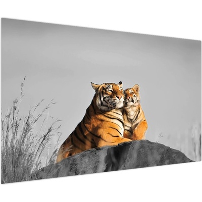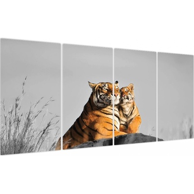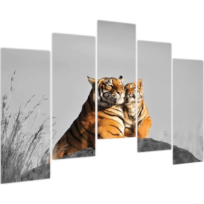 Obraz - Tygřice a její mládě, pětidílný 110x60 cm