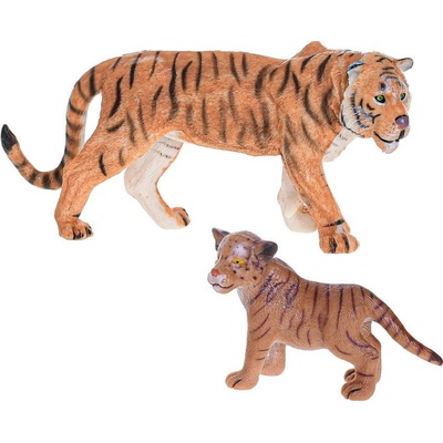 Plastová figurka tygra s mládětem. Rozměr: 7 - 15 cm Materiál: plast Baleno v krabičce.