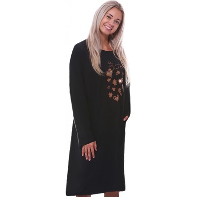 Černá noční košilka s dlouhými rukávy pro plnoštíhlé ženy či dívky Tygřice. Dámská noční košilka s dlouhými rukávy – dokonalé spojení pohodlí a elegance pro chladnější noci....