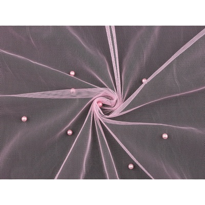 Jemný tyl zdobí přinýtované perly. Je vhodný na výrobu svatebních závojů, šatů, sukní apod. Průměr perel je 6 mm. Perly nemají pravidelný rozestup: černé 3,5 - 17 cm, bílé 5 -...