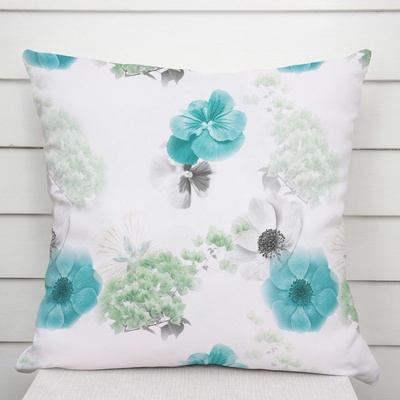 Dekorační povlak na polštář se vzorem tyrkysových růží na bílém podkladu, ušitý ze 100% polyesterové látky s vodoodpudivou a nešpinovou teflonovou úpravou. Je stálobarevný,...