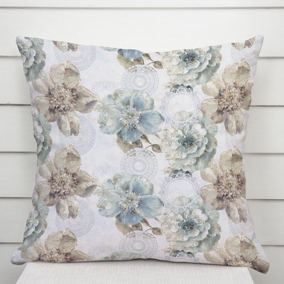 Dekorační povlak na polštář s ozdobným lemem, se vzorem tyrkysových květů s orientálními kruhy. Je ušitý z kvalitní a pevné dekorační látky s digitálním tiskem, se složením z...