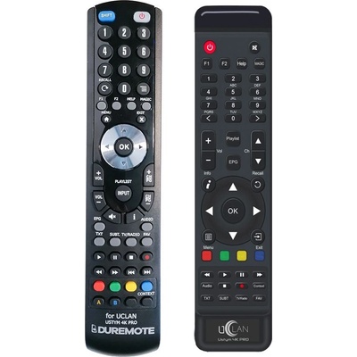 Dálkový ovladač UCLAN Ustym 4K PRO duplikát 1:1 originálního dálkového ovladače. Dokonalá 1:1 kopie navržená a vyrobená naší firmou – má všechny funkce originálního ovladače pro tyto modely značky UCLAN:USTYM 4K PRO. (Nemusí zde být uvedeny úplně všechny kompatibilní...