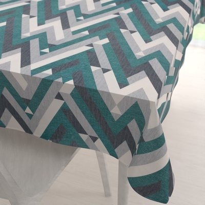 Dekorační obdélníkový ubrus na jídelní stůl, vyrobený z hebké a příjemné sametové látky Tamara s digitálním tiskem, se vzorem tmavě zelených, šedých a krémových designových...