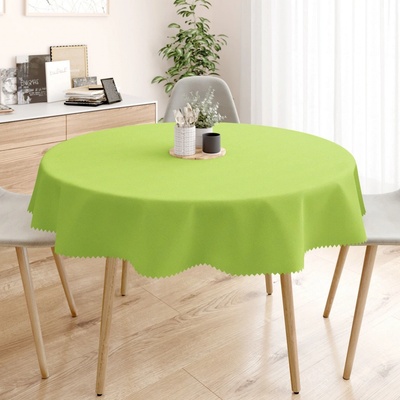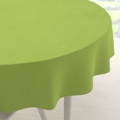 Teflonový kulatý ubrus na jídelní stůl, s jemným vzorováním v hráškově zelené barvě, vyrobený ze 100% polyesterové látky s vodoodpudivou a nešpinivou teflonovou úpravou. Je...