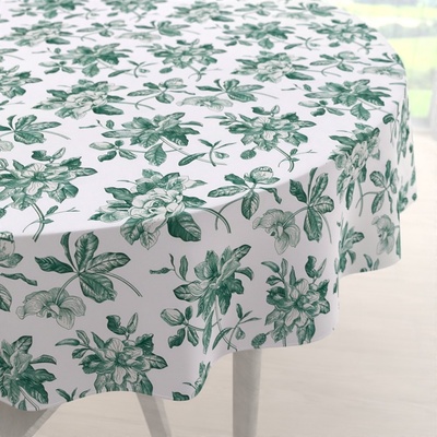 Teflonový kulatý ubrus na jídelní stůl se vzorem zelených květin na bílém podkladu, vyrobený ze 100% polyesterové látky s vodoodpudivou a nešpinivou teflonovou úpravou. Je...