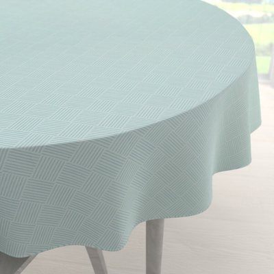 Teflonový kulatý ubrus na jídelní stůl s lesklým designovým vzorem proplétaných čtverečků v světle mentolové barvě, vyrobený ze 100% polyesterové látky s vodoodpudivou a...
