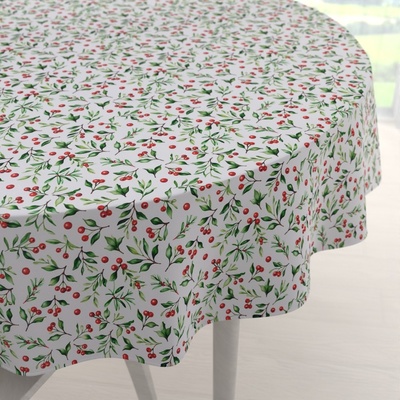 Teflonový kulatý ubrus na jídelní stůl se vzorem jeřabin na bílém podkladu, vyrobený ze 100% polyesterové látky s vodoodpudivou a nešpinivou teflonovou úpravou. Je stálobarevný,...