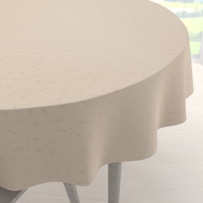 Teflonový kulatý ubrus na jídelní stůl s vytkaným vzorem pnoucích lístků v béžové barvě, vyrobený ze 100% polyesterové látky s vodoodpudivou a nešpinivou teflonovou úpravou....