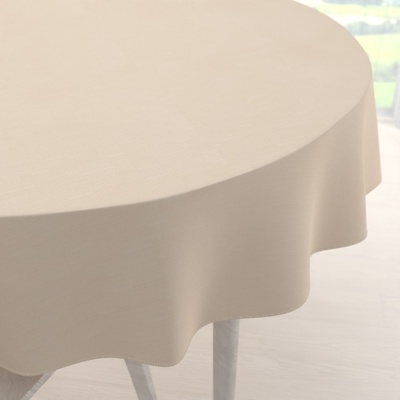 Béžový kulatý teflonový ubrus s voduodpuzující úpravou vyrobený ze 100% polyesteru. Díky teflonové úpravě se vylitá tekutina nevsákne do ubrusu a zůstane pouze na povrchu ve...