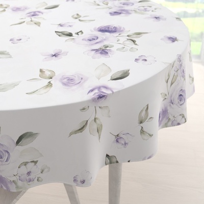 Teflonový kulatý ubrus na jídelní stůl se vzorem fialových růží na bílém podkladu, vyrobený ze 100% polyesterové látky s vodoodpudivou a nešpinivou teflonovou úpravou. Je...