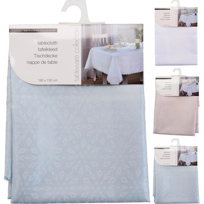 TABLECLOTH DAMAST, SIZE 180X130CM. 100 PERCENT POLYESTER, 125 GRAM PER SQUARE METER. 3 ASSORTED DAWN DESIGNS WITH STRAIGHT SEWING EDGE. EACH WITH COLOR PAPER AND PP HANGER,...