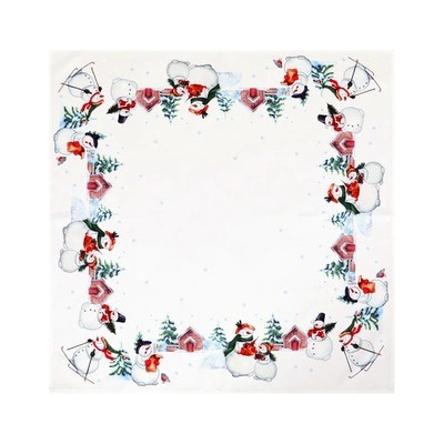Bílý ubrus UBR106-3 s malovanou zimní krajinou a veselými sněhuláky po jeho okrajích, bude výbornou volbou na prostření svátečního stolu. Jeho rozměry jsou 80 x 80 cm a je ze...