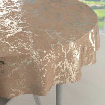 Sametový kulatý ubrus na velký jídelní stůl, se zlatým mramorovým vzorem na pudrově béžovém podkladu, vyrobený z kvalitní látky Isabela o gramáži 285...