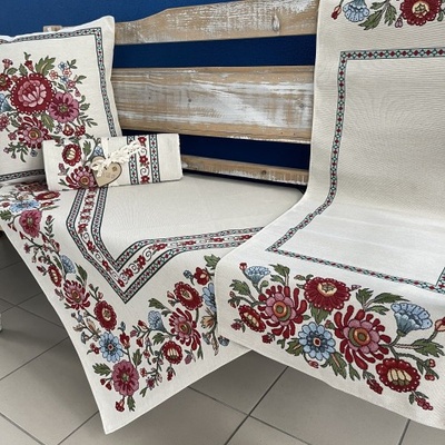 Vysoce kvalitní gobelínový ubrus s motivem folklorních květů a lemováním. Ubrusy jsou ušity z velmi kvalitního materiálu, který zaručuje velmi dlouhou životnost. Gobelínové...