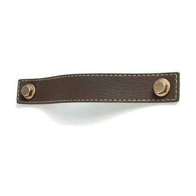 Kožená úchytka hnědá, s měděným prvkem a béžovým prošíváním se hodí ke každému nábytku. Díky materiálu jsou kožené úchytky příjemné na dotek. Balený obsahuje knopek a 2 kusy...