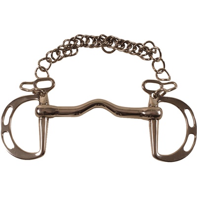 Nelomené pákové udidlo s D-kroužky. Jeho specifickým rysem je možnost připnutí otěží k různým slotům části D-kroužku, což umožňuje jezdci regulovat pákový efekt a tím i ostrost...